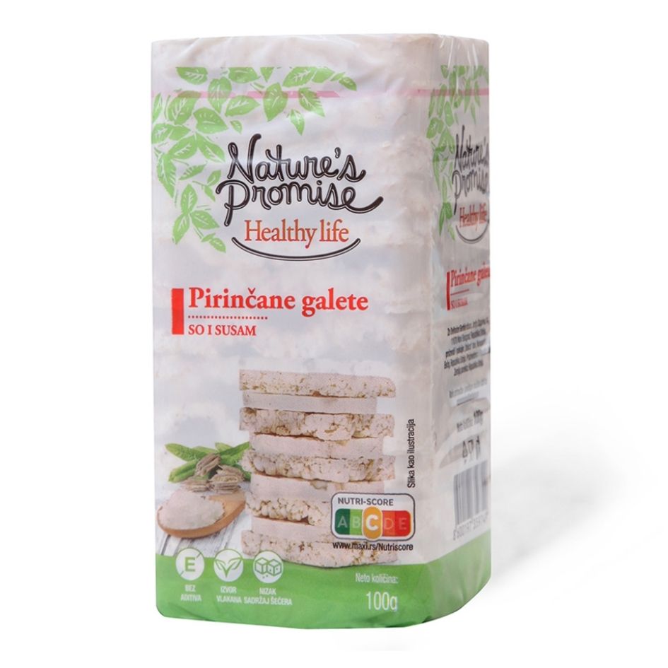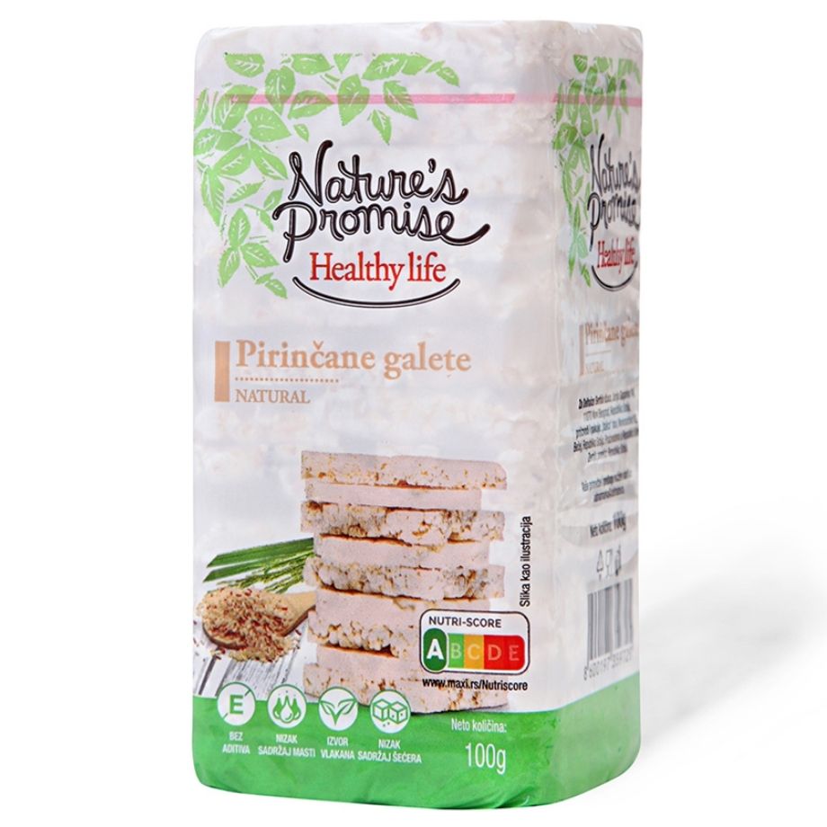 Pirinčane galete su lagani i hrskavi proizvodi napravljeni od ekspandiranog pirinča, poznati po niskoj kalorijskoj vrednosti i neutralnom ukusu. Predstavljaju dobar izvor složenih ugljenih hidrata, ali sadrže relativno malo proteina i masti, pa se često kombinuju sa namazima, povrćem ili sirom kako bi obrok bio hranljiviji i zasitniji. Iako imaju visok glikemijski indeks, galete su praktična i brza užina, naročito kod osoba koje vode računa o unosu kalorija. Zbog svoje lagane teksture i neutralnog ukusa popularne su kao zamena za hleb u dijetalnim režimima.