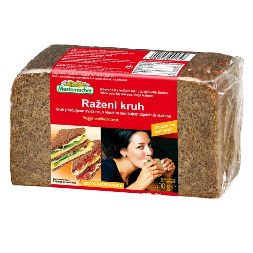 Raženi hleb je hranljiva alternativa belom hlebu, poznat po tamnijoj boji i bogatom, blago kiselkastom ukusu. Pravi se od raženog brašna, često u kombinaciji sa pšeničnim, a odlikuje se većim sadržajem vlakana, magnezijuma, cinka i vitamina B kompleksa. Zbog složenih ugljenih hidrata i vlakana, raženi hleb se sporije vari i obezbeđuje stabilan nivo energije, pa je dobar izbor za osobe koje žele duži osećaj sitosti i bolju kontrolu šećera u krvi. Često se preporučuje u dijetalnim režimima ishrane, a idealno se kombinuje sa povrćem, sirom i mesom.