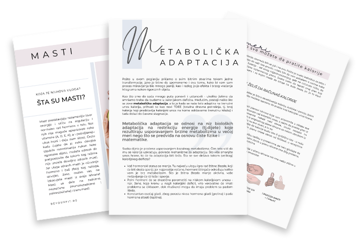 Ako već imaš staru verziju e-knjige, nema potrebe da kupuješ ponovo – osim ako želiš da imaš ovu najnoviju, proširenu verziju uz video lekciju. U tom slučaju možeš da nam se javiš na info@beyourfit.rs sa mejla koji si koristila prilikom prve kupovine, i dobićeš 50% popusta za novu verziju e-booka kao znak zahvalnosti što si deo BeYourFit zajednice. 💛