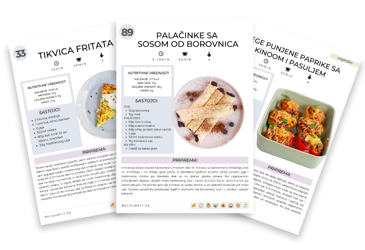 Jeste – samo je ovo malo unapređena verzija originalnog e-booka, koji je do sada kupilo više od 2.000 ljudi. Sada je osvežen i rebrendiran za BeYourFit zajednicu: dodato je 80+ novih recepata, veganski plan ishrane, kao i ažurirane informacije i praktični primeri u edukativnom delu.