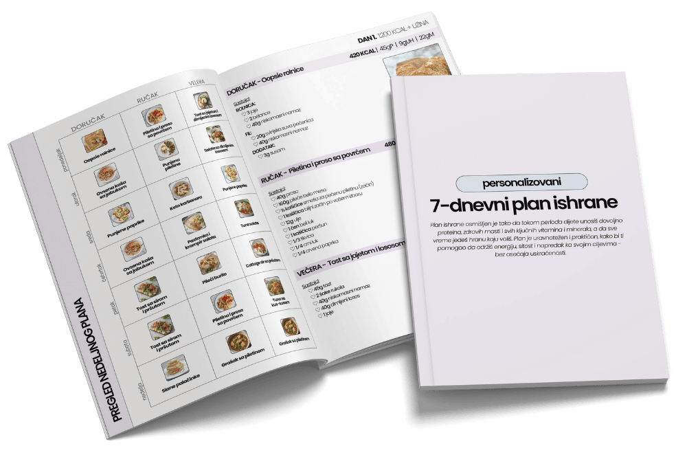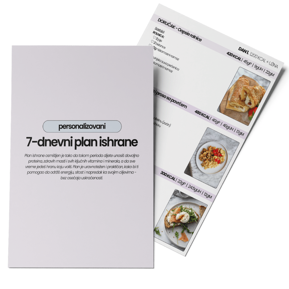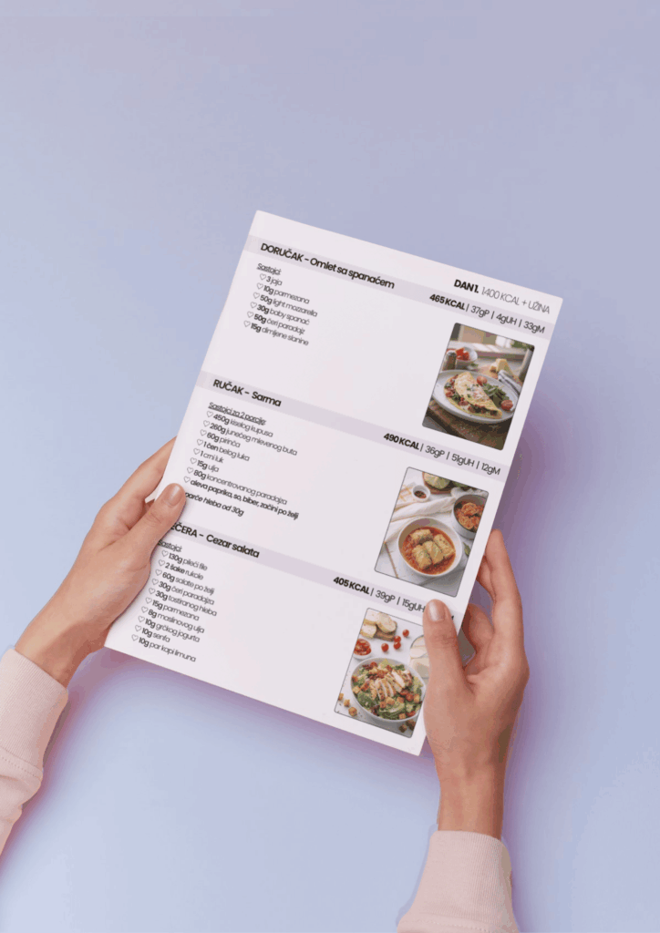 Zaboravi univerzalne dijete i nasumične savete sa interneta. Ovaj plan je pažljivo kreiran samo za tebe – tvoje ciljeve, navike i način života. Bez odricanja, bez stresa, bez brojanja kalorija koje ne razumeš. Samo jasan sistem, realni obroci i koraci koje možeš da pratiš – zauvek.