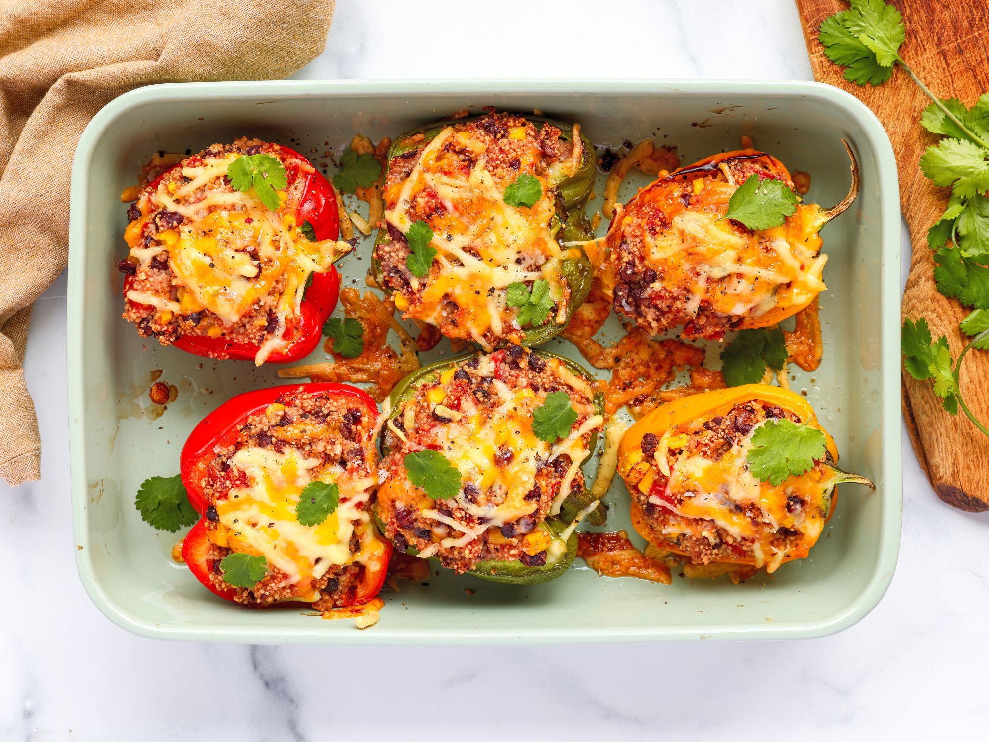 Pecite nepokrivene u rerni 30-35 minuta, dok paprike ne omekšaju.Izvadite iz rerne, pospite svežim peršunom i poslužite toplo.